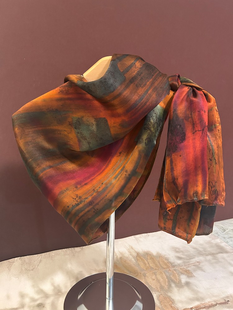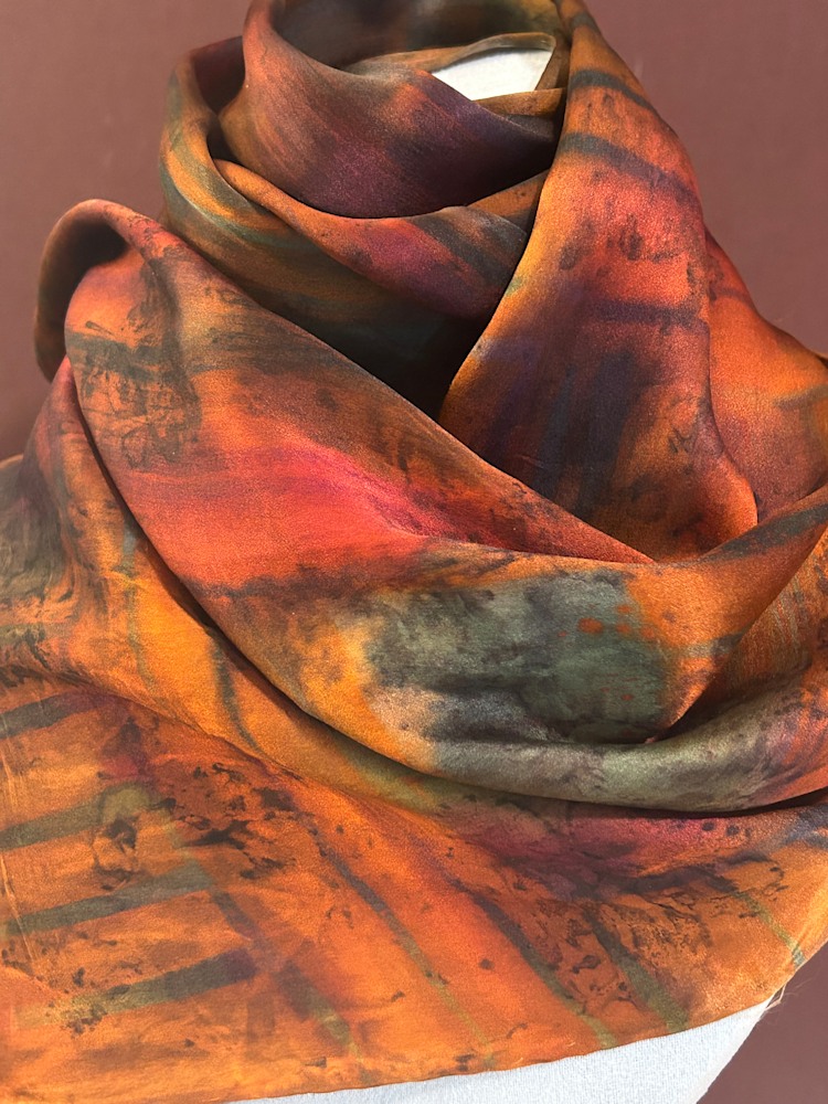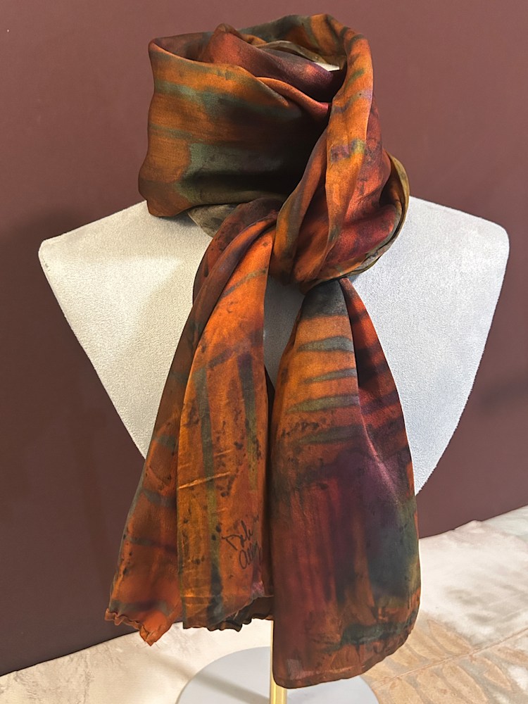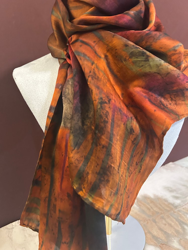 14" x 72" Hand painted silk satin scarf with hand rolled hem