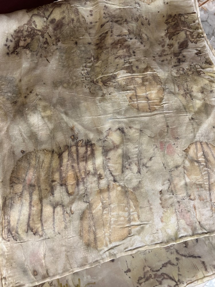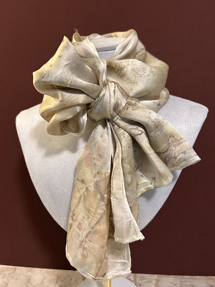 14" x 72" silk satin eco printed scarf with hand rolled hem